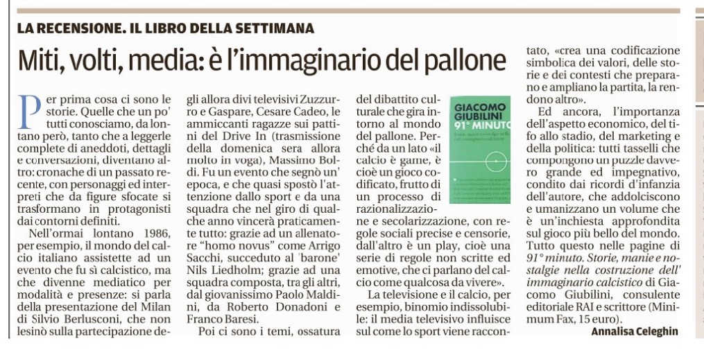 Limmersione di Giubilini nei sentimenti dei suoi personaggi dà grande validità a un libro che è dedicato al vicino passato del calcio ma che ne mostra anche i futuri sviluppi.Leggi