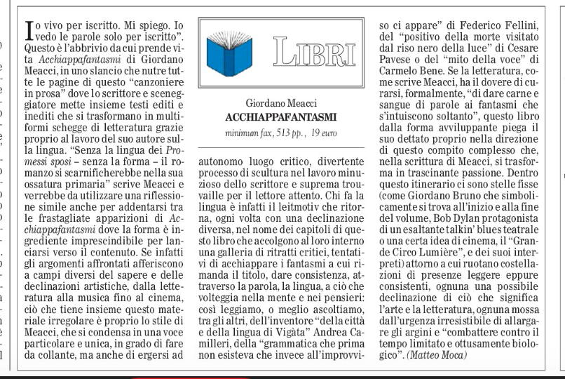 Dai fantasmi non si scappa, e non ho nessuna voglia di farlo, apro WhatsApp e scrivo a un amico: – Hai letto Acchiappafantasmi, di Meacci? Se no, fallo.Leggi