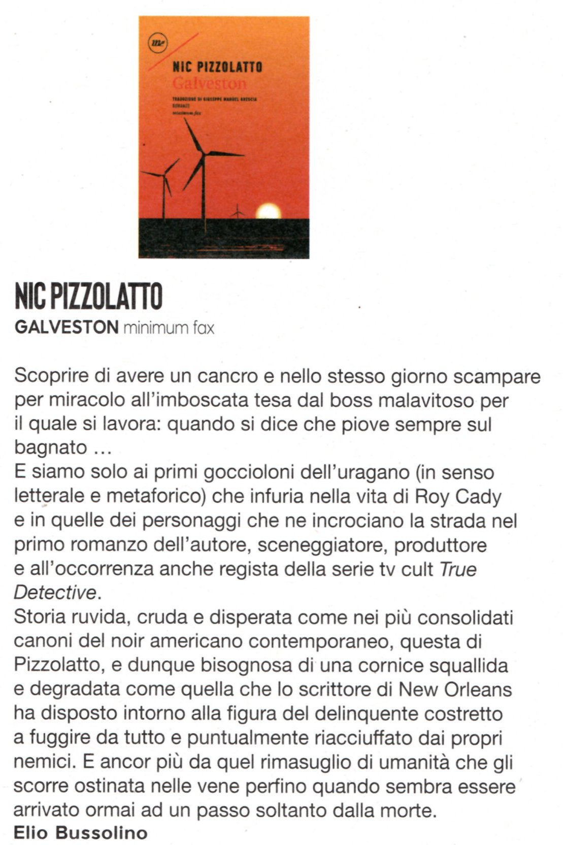Un solo romanzo, Galveston, e tanto è bastato per scolpire il nome di Pizzolatto nella letteratura noir contemporanea.Leggi