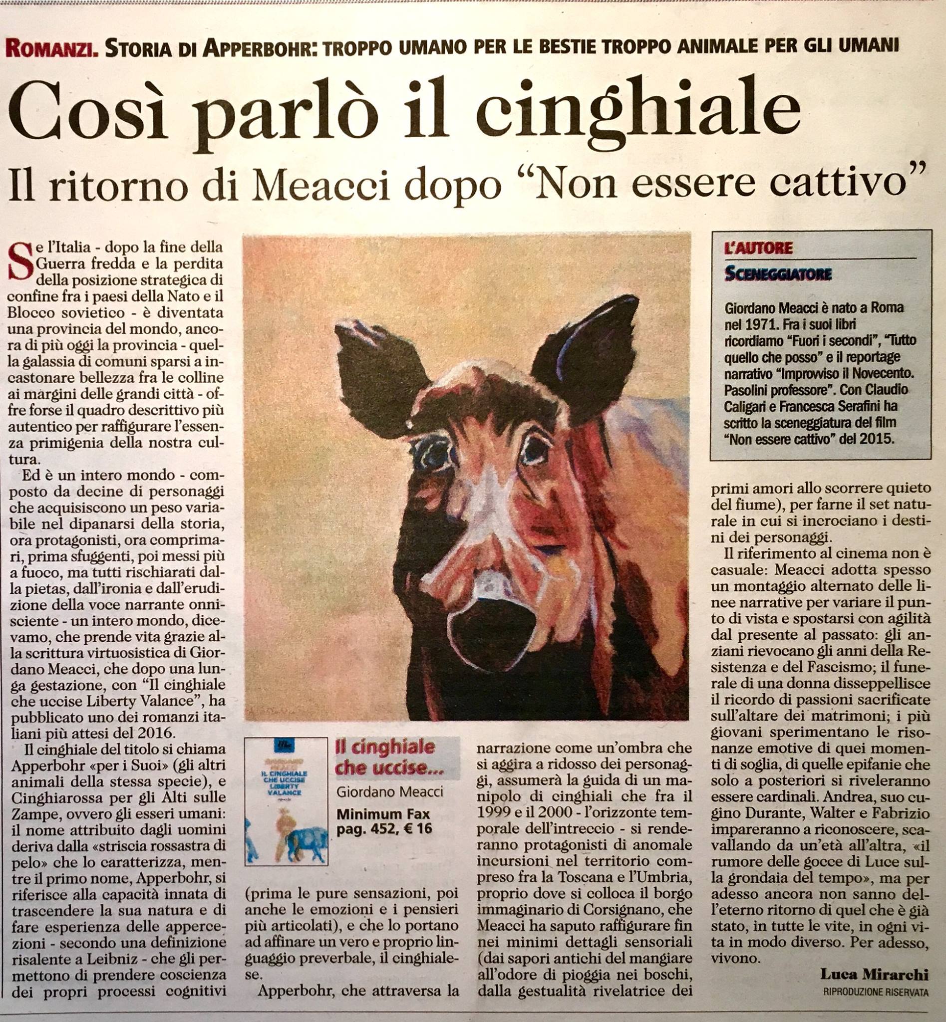 "Il Cinghiale che uccise Liberty Valance" candidato al Premio Strega da Giuseppe Antonelli e Diego De Silva.Leggi