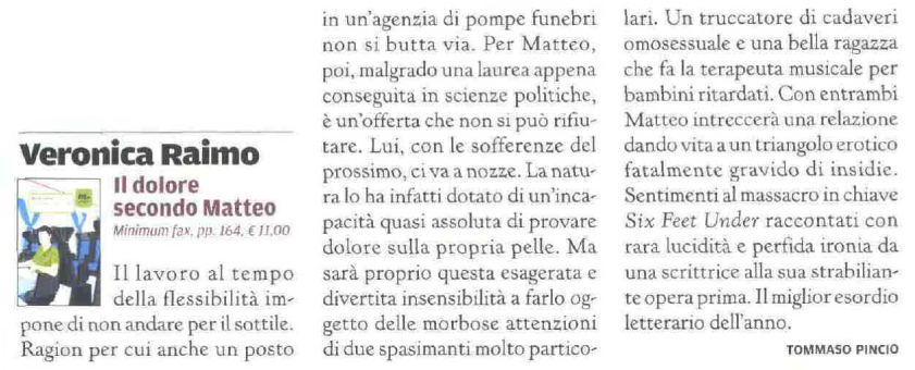 Intervista a Veronica Raimo: «Temo che i miei personaggi siano molto spesso non simpatici, o meglio non “empatici”. Non ho mai cercato l’empatia nella scrittura, ma in effetti Matteo è un po’ estremo ...Leggi