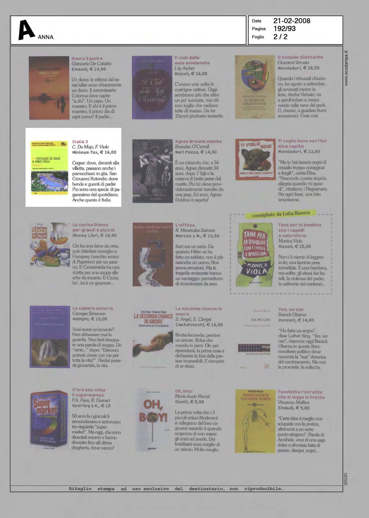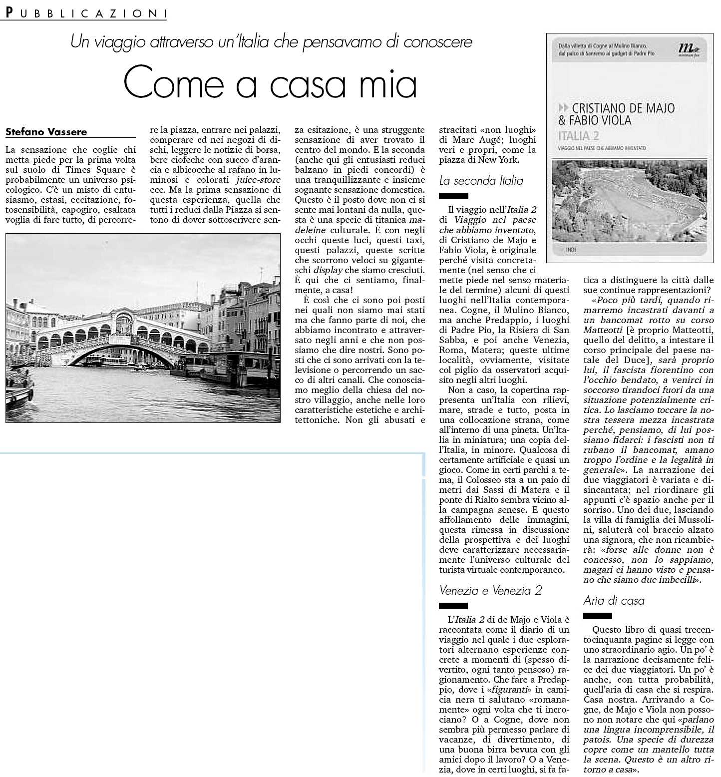 In questo «viaggio nel paese che abbiamo inventato», de Majo e Viola ci portano a esplorare dal vivo la mappa del nostro immaginario pop, televisivo, culturaloide, esploso più che contaminato. Uno spassoso tour de force che diventa però anche il ritratto spietato di un Paese che somiglia sempre più a un parco a tema, all’interno di una cultura che non sembra saper far altro che giocare facendo finta di vivere.
