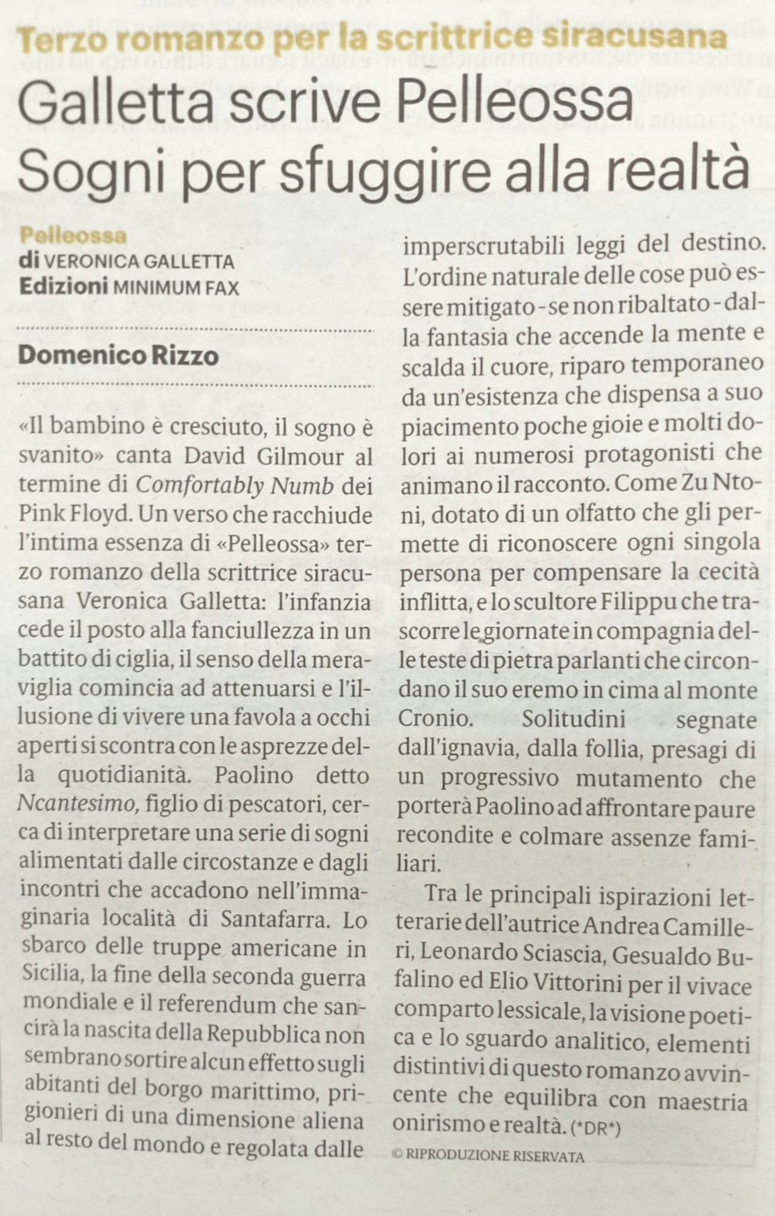 Con una lingua che mescola italiano e dialetto a creare un nuovo impasto, plastico e mimetico alla trama, Veronica Galletta ci racconta un periodo della storia siciliana che è meno lontano di quanto appaia, con riferimenti alla tradizione letteraria isolana, nel solco dell’ambiguità fra reale e fantastico che ha già caratterizzato i suoi romanzi precedenti.