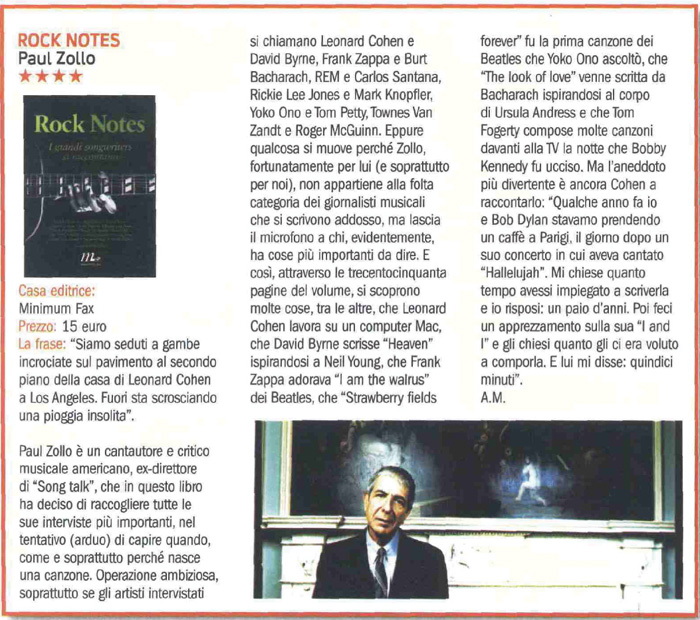 L’ispirazione dietro la musica, le storie dietro le parole: alcuni fra i più grandi songwriter della storia del rock raccontano i retroscena delle loro canzoni. In una serie di avvincenti conversazioni con l’acclamato critico musicale Paul Zollo, i protagonisti della scena rock si spingono nel territorio «pericoloso» dove la vita si fonde con l’arte, svelando il loro lato più intimo e segreto: quello che dal privato delle passioni, delle debolezze, degli amori, li ha portati alla creazione dei capolavori che li hanno resi celebri. Dagli anni Settanta psichedelici e sfrenati di Frank Zappa e Carlos Santana alle levigate sonorità new wave dei Talking Heads, dalle melodie acustiche di Leonard Cohen e Suzanne Vega alle chitarre elettriche dei R.E.M. e dei Dire Straits, Rock Notes è una panoramica a 360 gradi sulla musica più emozionante di ieri e di oggi. Un libro tutto da ascoltare, un «viaggio al centro delle sette note» che non mancherà di entusiasmare gli aspiranti musicisti come i semplici appassionati, i giovani rockettari in erba come gli adulti nostalgici del buon rock di una volta.