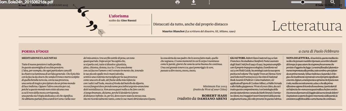 West of Your Cities – curata in esclusiva mondiale per minimum fax dal più grande poeta americano vivente, Mark Strand, e ottimamente tradotta da Damiano Abeni – raccoglie il meglio del meglio della poesia americana contemporanea. Undici voci diverse ma ben intonate ci raccontano in maniera corale in che modo dal dopoguerra a oggi si è andata modificando negli Stati Uniti non solo la poesia, ma anche la società, la politica, la vita: la poesia degli undici componenti di questa ideale “All Stars” letteraria (in squadra ci sono ben otto premi Pulitzer) mai indugia a riflettere pigramente solo su se stessa, ma cerca di indagare, e di incidere, sulla realtà, raccontandoci dal di dentro cosa succede, appunto, a ovest delle nostre città.